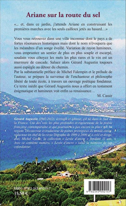 Vous vous retrouvez dans une ville inconnue dont le pays a de fortes résonances historiques mais dont le nom n’évoquera que les méandres d’un songe éveillé. Variation de rayon lumineux, vous empruntez un sentier de plus en plus souple et escarpé, soudain vous côtoyez les mets les plus rares et le vin est un murmure de cascade. Saluez alors Gérard Augustin toujours aussi espiègle au détour du chemin. Ce texte inédit que Gérard Augustin nous a offert en testament énigmatique et lumineux voit enfin sa renaissance …