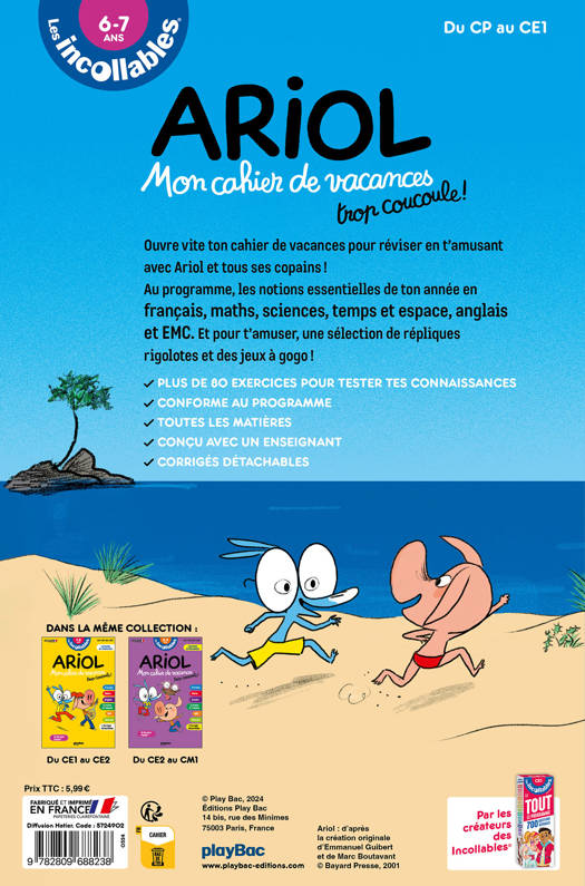 Ouvre vite ce cahier de vacances pour réviser en t’amusant avec Ariol et tous ses copains ! - Au programme, les notions essentielles de ton année en français, maths, sciences, temps et espace, anglais et EMC. - Et pour t’amuser, une sélection jeux rigolos !