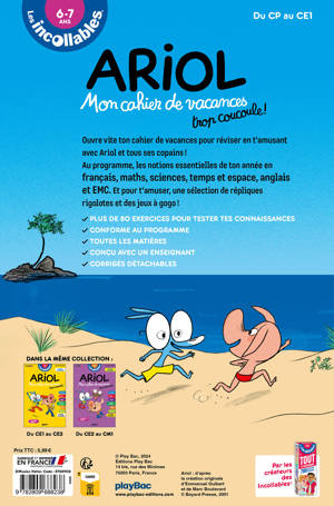 Avec la caution Incollables - Créé par des enseignants, adopté par les enfants et les parents ! - La marque qui accompagne tous vos étés depuis 35 ans. Papier issu des forêts vosgiennes, produit par les papèteries Clairefontaine. Imprimé en France.