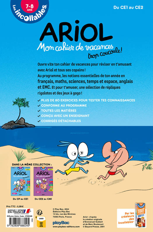 Ouvre vite ce cahier de vacances pour réviser en t’amusant avec Ariol et tous ses copains ! - Au programme, les notions essentielles de ton année en français, maths, sciences, temps et espace, anglais et EMC. - Et pour t’amuser, une sélection jeux rigolos !