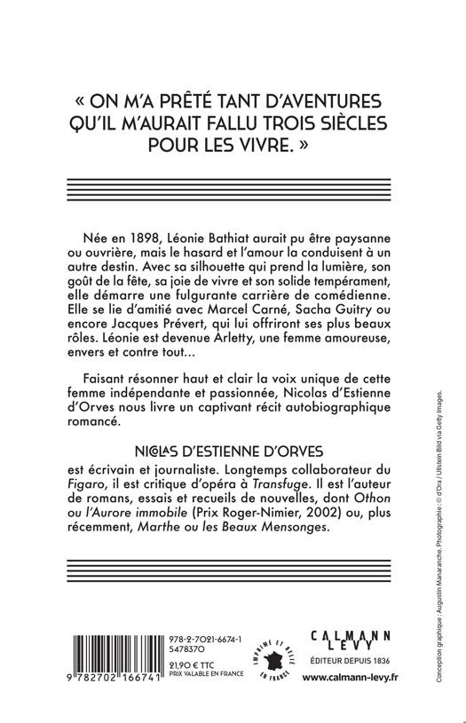 Elle se lie d’amitié avec Marcel Carné, Sacha Guitry ou encore Jacques Prévert, qui lui offriront ses plus beaux rôles. Léonie est devenue Arletty, une femme amoureuse, envers et contre tout…