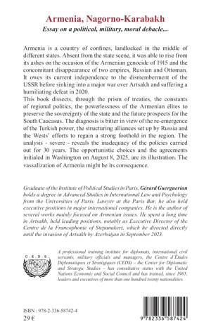 This book dissects, through the prism of treaties, the constants of regional politics, the powerlessness of the Armenian élites to preserve the sovereignty of the state and the future prospects for the South Caucasus. The diagnosis is bitter in view of the re-emergence of the Turkish power, the structuring alliances set up by Russia and the Wests efforts to regain a strong foothold in the region. The analysis - severe - reveals the inadequacy of the policies carried out for 30 years. The opportunistic choices and the agreements initialed in Washington on August 8, 2025, are its illustration. The vassalization of Armenia might be its consequence.