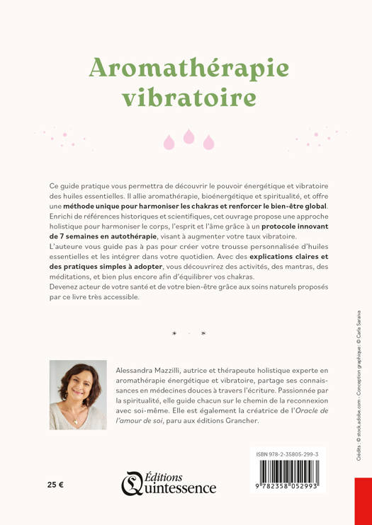 Ce guide pratique vous permettra de découvrir le pouvoir énergétique et vibratoire des huiles essentielles. Il allie aromathérapie, bioénergétique et spiritualité, et offre une méthode unique pour harmoniser les chakras et renforcer le bien-être global. Enrichi de références historiques et scientifiques, cet ouvrage propose une approche holistique pour harmoniser le corps, l'esprit et l'âme grâce à un protocole innovant de 7 semaines en autothérapie, visant à augmenter votre taux vibratoire. L’auteure vous guide pas à pas pour créer votre trousse personnalisée d’huiles essentielles et les intégrer dans votre quotidien. Avec des explications claires et des pratiques simples à adopter, vous découvrirez des activités, des mantras, des méditations, et bien plus encore afin d’équilibrer vos chakras. Devenez acteur de votre santé et de votre bien-être grâce aux soins naturels proposés par ce livre très accessible.