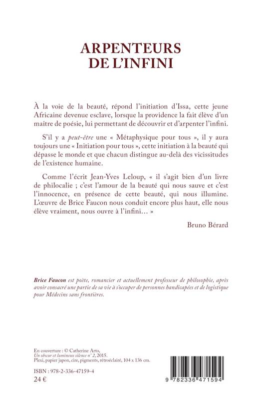 À la voie de la beauté, répond l’initiation d’Issa, cette jeune Africaine devenue esclave, lorsque la providence la fait élève d’un maître de poésie, lui permettant de découvrir et d’arpenter l’infini. S’il y a peut-être une « Métaphysique pour tous », il y aura toujours une « Initiation pour tous », cette initiation à la beauté qui dépasse le monde et que chacun distingue au-delà des vicissitudes de l’existence humaine. Comme l’écrit Jean-Yves Leloup, « il s’agit bien d’un livre de philocalie ; c’est l’amour de la beauté qui nous sauve et c’est l’innocence, en présence de cette beauté qui nous illumine. L’œuvre de Brice Faucon nous conduit encore plus haut, elle nous élève vraiment, nous ouvre à l’infini… » Bruno Bérard