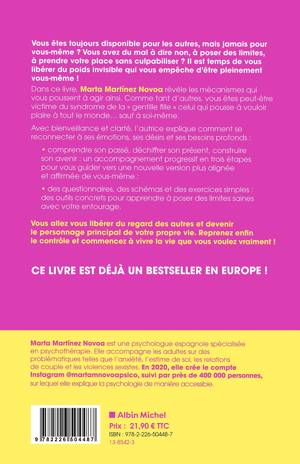 Dans ce livre, Marta Martínez Novoa révèle les mécanismes qui vous poussent à agir ainsi. Comme tant d'autres, vous êtes peut-être victime du syndrome de la « gentille fille » celui qui pousse à vouloir plaire à tout le monde... sauf à soi-même.