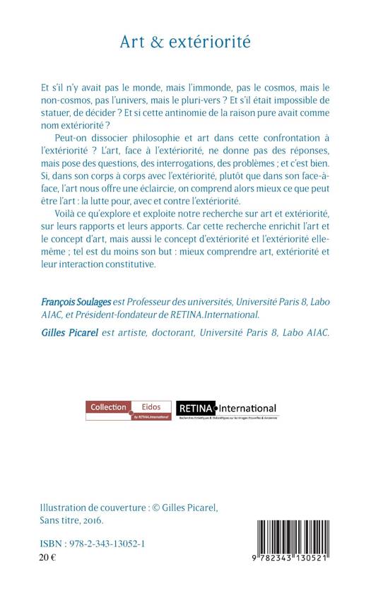 Peut-on dissocier philosophie et art dans la confrontation à l'extériorité ? L'art, face à celle-ci, ne donne pas de réponses, mais pose des questions. Doit-il être sans extériorité, donc alors art pour l'art, jeu de formes ou de matières qui ne renvoie qu'à lui-même ? Les enjeux ne concernent pas tant les oeuvres mêmes que notre rapport possible à ces oeuvres, et à partir de là, à notre existence et à notre rapport à l'infini. Peut-être qu'ainsi l'art crée un monde, un cosmos, un univers ?