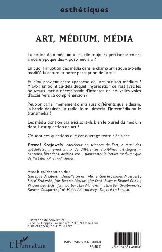 En quoi l'irruption des média dans le champ artistique a-t-elle modifié la nature et notre perception de l'art ? Y a-t-il un point au-delà duquel l'hybridation de l'art avec les nouveaux média nécessiterait d'inventer de nouvelles voies d'accès vers sa compréhension ? Les média dont on parle ici sont-ils bien le pluriel du médium dont il est question en art ? Ce sont ces questions que cet ouvrage tente d'éclairer.
