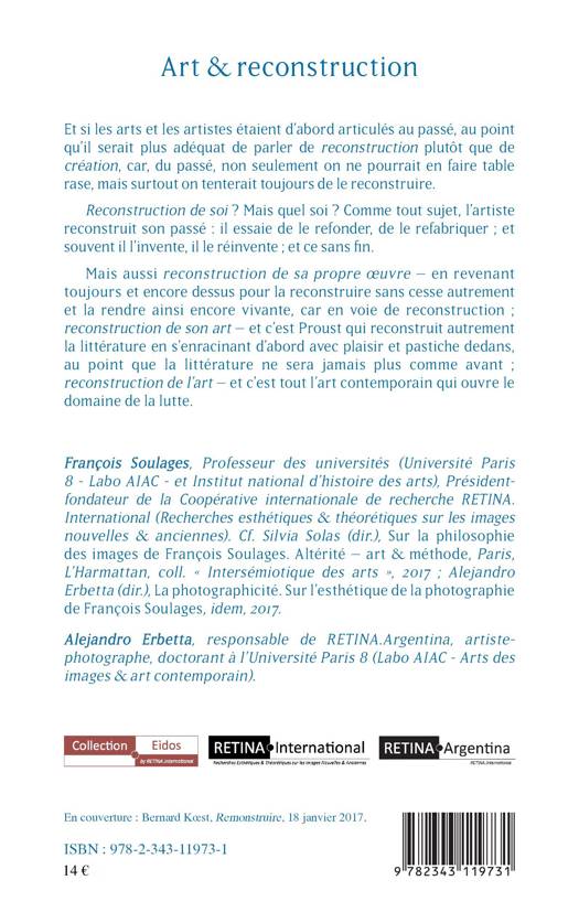 Et si les arts et les artistes étaient d'abord articulés au passé, au point qu'il serait plus adéquat de parler de reconstruction plutôt que de création, car, du passé, non seulement on ne pourrait faire table rase, mais surtout on tenterait toujours de le reconstruire. Reconstruction de soi, reconstruction de sa propre œuvre, reconstruction de son art et enfin, reconstruction de l'art : cet ouvrage explore cette thématique entre art et reconstruction au travers de sept contributions d'artistes et de chercheurs.