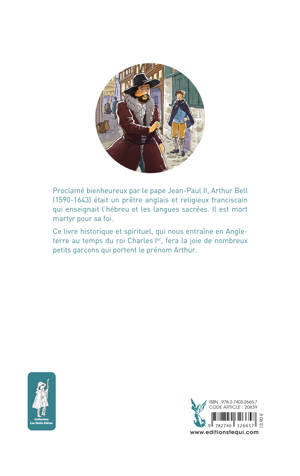 Condamné à mort par le roi Charles Ier d'Angleterre, Arthur Bell est mort le 11 décembre 1643. Il enseignait l'hébreu et les langues sacrées , par exemple, il récitait le rosaire en anglais, en latin, en grec, en hébreu, en flamand et en français ! Dans son couvent franciscain, il exerça durant dix ans un riche apostolat. Un jour, alors qu'il est route pour célébrer un mariage, il arrêté et jeté en prison. Condamné à mourir « pendu, noyé et écartelé », il remercie les juges : « Merci de me donner la chance de mourir pour le Christ ! » La vie et la mort d’Arthur laissèrent une vive impression à ses contemporains. Le procès pour la cause de sa béatification s'est ouvert à Rome en 1900, mais il faudra attendre jusqu'au 22 novembre 1987 pour qu’il soit proclamé bienheureux par Jean-Paul II aux côtés de prêtres et d'hommes de loi exécutés entre 1584 et 1679. Ce livre fera la joie de beaucoup de petits garçons qui portent le prénom Arthur.