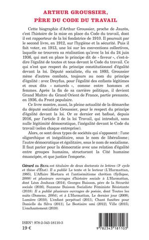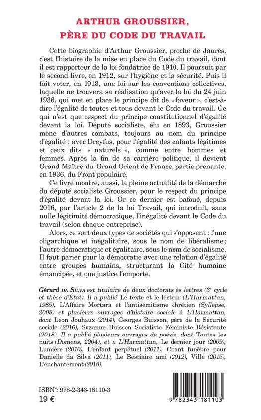 Cette biographie d'Arthur Groussier, c'est l'histoire de la mise en place du Code du travail, dont il est rapporteur de la loi fondatrice de 1910. Il fait voter en 1913 une loi sur les conventions collectives qui met en place l'égalité de tous.tes devant le Code du travail, une fois pleinement réalisée par la loi du 24 juin 1936. Député socialiste, Groussier mènera d'autres combats au nom du principe d'égalité. Ce livre montre, aussi, la pleine actualité de la démarche de Groussier, pour le respect du principe d'égalité devant la loi, bafoué depuis 2016 par l'article 2 de la loi Travail, qui introduit, sans légitimité démocratique, l'inégalité devant le Code du travail.