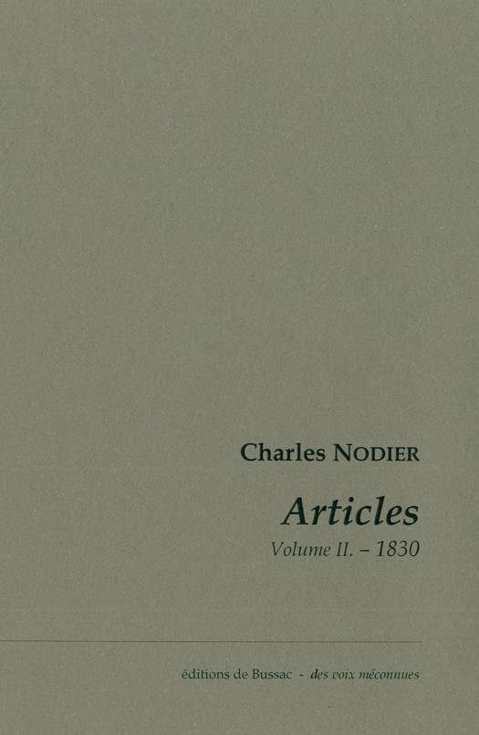 Recueil des articles de Charles Nodier, parus dans la presse et dans les revues pendant l'année 1830.