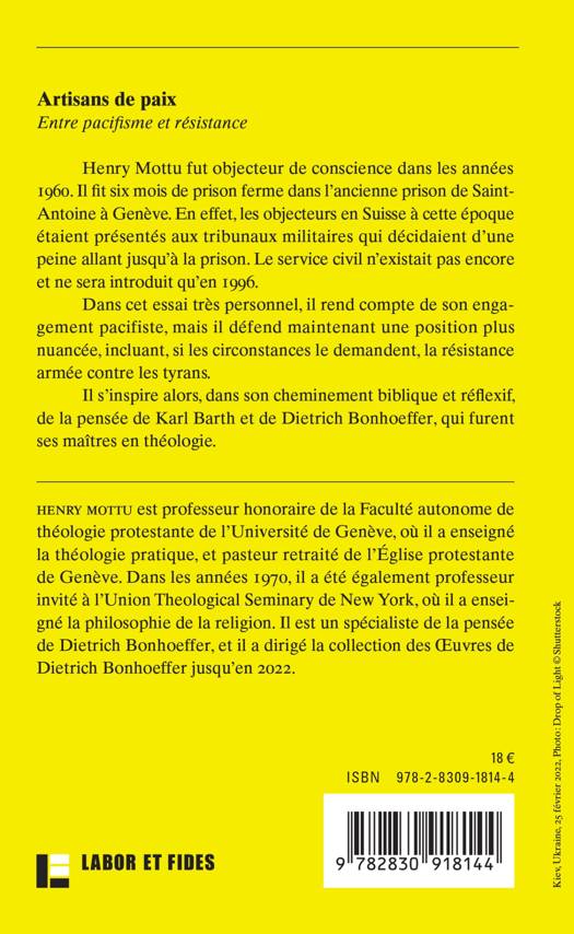 Henry Mottu fut objecteur de conscience dans les années 1960. Il fit six mois de prison ferme dans l’ancienne prison de Saint-Antoine à Genève. En effet, les objecteurs en Suisse à cette époque étaient présentés aux tribunaux militaires qui décidaient d’une peine allant jusqu’à la prison. Le service civil n’existait pas encore et ne sera introduit qu’en 1996. Dans cet essai très personnel, il rend compte de son engagement pacifiste, mais il défend maintenant une position plus nuancée, incluant si les circonstances le demandent la résistance armée contre les tyrans. Il s’inspire alors, dans son cheminement biblique et réflexif, de la pensée de Karl Barth et de Dietrich Bonhoeffer, qui furent ses maîtres en théologie.