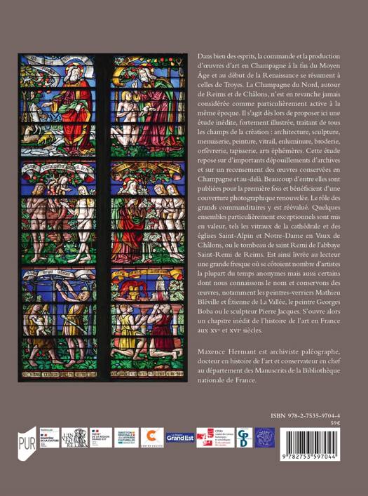 Dans bien des esprits, la commande et la production d’oeuvres d’art en Champagne à la fi n du Moyen Âge et au début de la Renaissance se résument à celles de Troyes. La Champagne du Nord, autour de Reims et de Châlons, n’est en revanche jamais considérée comme particulièrement active à la même époque. Il s’agit dès lors de proposer ici une étude inédite, fortement illustrée, traitant de tous les champs de la création : architecture, sculpture, menuiserie, peinture, vitrail, enluminure, broderie, orfèvrerie, tapisserie, arts éphémères. Cette étude repose sur d’importants dépouillements d’archives et sur un recensement des oeuvres conservées en Champagne et au-delà. Beaucoup d’entre elles sont publiées pour la première fois et bénéficient d’une couverture photographique renouvelée. Le rôle des grands commanditaires y est réévalué. Quelques ensembles particulièrement exceptionnels sont mis en valeur, tels les vitraux de la cathédrale et des églises Saint-Alpin et Notre-Dame en Vaux de Châlons, ou le tombeau de saint Remi de l’abbaye Saint-Remi de Reims. Est ainsi livrée au lecteur une grande fresque où se côtoient nombre d’artistes la plupart du temps anonymes mais aussi certains dont nous connaissons le nom et conservons des oeuvres, notamment les peintres-verriers Mathieu Bléville et Étienne de La Vallée, le peintre Georges Boba ou le sculpteur Pierre Jacques. S’ouvre alors un chapitre inédit de l’histoire de l’art en France aux XVe et XVIe siècles.