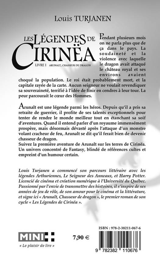 Louis Turjanen a commencé son parcours littéraire avec les légendes Arthuriennes, Le Seigneur des Anneaux, et Harry Potter. Licencié de cinéma et création numérique à l'Université du Québec. Passionné par l'envie de transmettre des histoires, il s'inspire de ses années de jeu de rôle, de son amour pour le cinéma et la littérature, et signe ici « Arunalt, Chasseur de dragon », le premier roman de son cycle « Les Légendes de Cirinëa ».