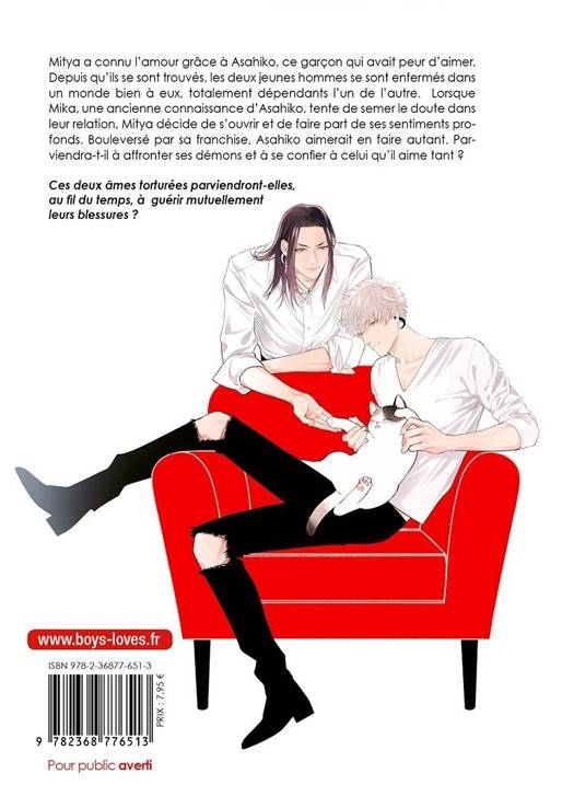 Mitya, taciturne métisse russo-japonais, n'ouvre son coeur à personne... excepté Asahiko, un jeune homme mystérieux et fidèle à ses désirs. Dès leur rencontre, les deux garçons sont tombés éperdument amoureux l'un de l'autre. Bien qu'ils ne vivent que pour eux, s'idolâtrant presque, il reste certaines blessures qu'ils sont toujours incapables de se confier. C'est alors que Mika, ancienne fréquentation douteuse d'Asahiko, vient se mêler à leur relation... Suivez la sulfureuse et dangereuse relation de ces deux jeunes hommes profondément meurtris. Mais attention, l'excès et la dépendance peuvent nuire en tout, même en amour...