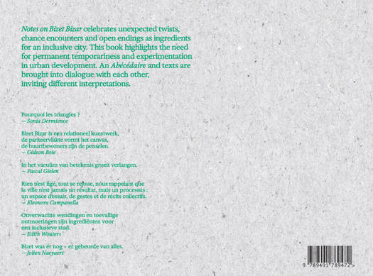 Dit boek viert de onverwachte wending, de toevallige ontmoeting en het open einde als onmisbare ingrediënten voor een inclusieve stad. Wat begon als een tijdelijke ingreep, ontpopte zich tot een meerjarig experiment in samen stad maken, permanente tijdelijkheid en relationeel ontwerpen in de publieke ruimte. Een praktijk waarin betekenis niet vooraf werd vastgelegd, maar ontstond in gebruik, toeval en herhaling.