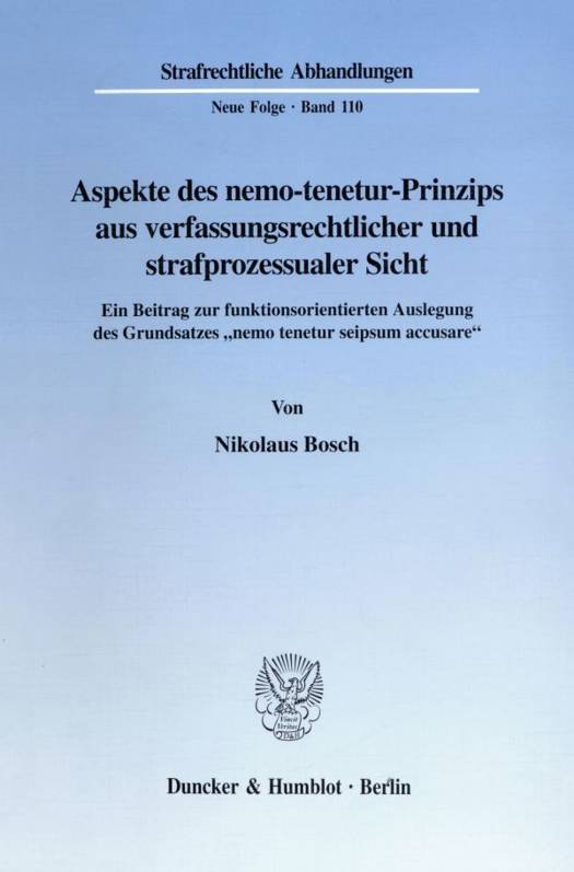 Der Autor nimmt dies zum Anlaß, die unterschiedlichen Ansätze zur Inhaltsbestimmung des nemo tenetur-Prinzips einer grundlegenden Revision zu unterziehen. Im ersten Teil werden die Schwächen verfassungsrechtlicher Begründungsmodelle des nemo tenetur-Grundsatzes aufgezeigt. Der Verfasser legt dar, warum diese nicht geeignet sind, zur Lösung konkreter Einzelfragen beizutragen. Dreh- und Angelpunkt einer widerspruchsfreien Inhaltsbestimmung kann nur eine funktionale Interpretation des Grundsatzes sein. Im zweiten Teil werden unter Berücksichtigung kommunikationstheoretischer Modelle auf der einen und formaler Konzeptionen auf der anderen Seite die Grundlagen für eine funktionale, prozeßzielorientierte Auslegung gelegt. Im letzten Teil wird anhand einzelner Problemkreise auf Inhalt bzw. Grenzen der Aussage- und Mitwirkungsfreiheit eingegangen. Der Autor erörtert Fragen der Strafzumessung, Beweiswürdigung und -verwertung und zeigt die besonderen Anforderungen auf, die an eine Beweiserhebung durch Sachverständige oder private Dritte zu stellen sind.