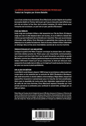 Lors d'une soirée trop alcoolisée, Enzo MacLeod, ancien légiste de la police écossaise établi en France, fait le pari qu'il saura résoudre sept affaires qui ont mis en échec la fine fleur de la police française. Et même lancé sous l'emprise de la boisson, un pari est un pari, parole d'Écossais ! Ce volume omnibus rassemble trois titres de la série Assassins sans visages, la série française de Peter May, qui compte en tout sept volumes : L'Île au rébus, Trois étoiles et un meurtre et Un alibi en béton.