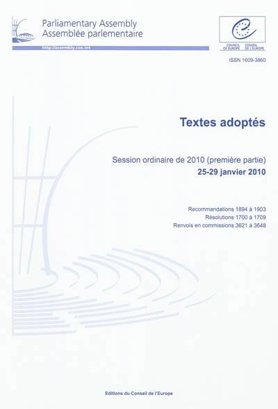 L'Assemblée parlementaire du Conseil de l'Europe publie un volume de textes adoptés lors de chacune de ses quatre parties de session et des réunions de sa Commission permanente.