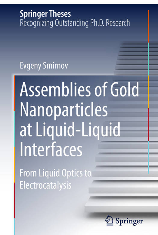 This book is devoted to various aspects of self-assembly of gold nanoparticles at liquid-liquid interfaces and investigation of their properties. It covers primarily two large fields: (i) self-assembly of nanoparticles and optical properties of these assemblies; and (ii) the role of nanoparticles in redox electrocatalysis at liquid-liquid interfaces. The first part aroused from a long-lasting idea to manipulate adsorption of nanoparticles at liquid-liquid with an external electric field to form 'smart' mirrors and/or filters. Therefore, Chapters 3 to 5 are dedicated to explore fundamental aspects of charged nanoparticles self-assembly and to investigate optical properties (extinction and reflectance) in a through manner. Novel tetrathiafulvalene (TTF)-assisted method leads to self-assembly of nanoparticles into cm-scale nanofilms or, so-called, metal liquid-like droplets (MeLLDs) with remarkable optical properties. The second part (Chapters 6 to 8) clarifies the role of nanoparticles in interfacial electron transfer reactions. They demonstrate how nanoparticles are charged and discharged upon equilibration of Fermi levels with redox couples in solution and how it can be used to perform HER and ORR. Finally, Chapter 9 gives a perspective outlook, including applications of suggested methods in fast, one-step preparation of colloidosomes, SERS substrates as well as pioneer studies on so-called Marangony-type shutters drive by the electric field.