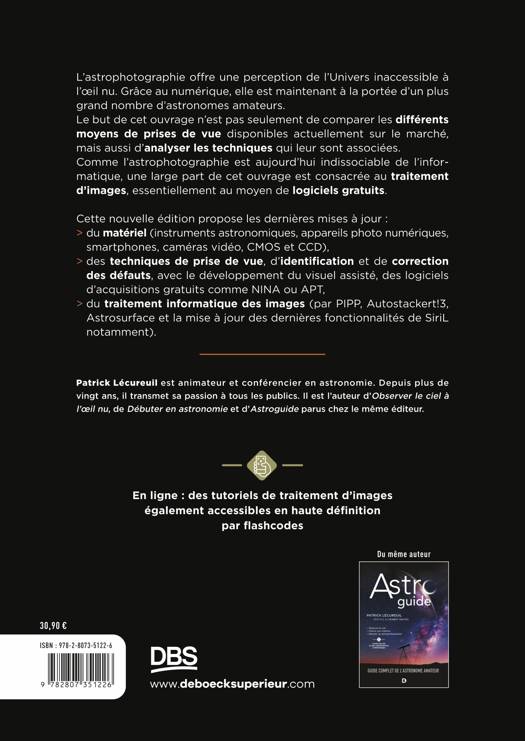 1. Les instruments – 2. Les capteurs numériques – 3. Photographier le ciel avec un smartphone – 4. Photographier le ciel au moyen d’un appareil photo numérique – 5. Photographier le ciel au moyen d’une caméra vidéo – 6. Photographier le ciel au moyen d’une caméra CMOS ou CCD – 7. Identifier et corriger les défauts d’un cliché – 8. Le traitement des images numériques – Annexes avec les sites internet et logiciels