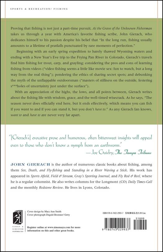 At the Grave of the Unknown Fisherman takes us through a year with America's favorite fishing scribe, John Gierach, who dedicates himself to his passion despite his belief that "In the long run, fishing usually amounts to a lifetime of pratfalls punctuated by rare moments of perfection."