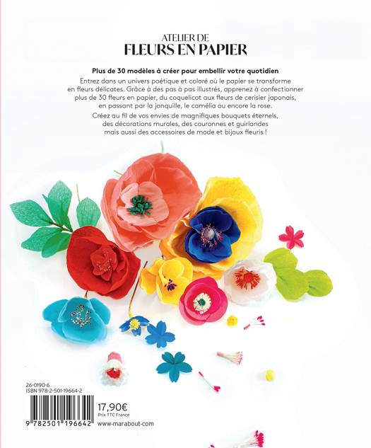 Entrez dans un univers poétique et coloré où le papier se transforme en fleurs délicates. Grâce à des pas à pas illustrés, apprenez à confectionner plus de 30 fleurs en papier, du coquelicot aux fleurs de cerisier japonais, en passant par la jonquille, le camélia ou encore la rose.