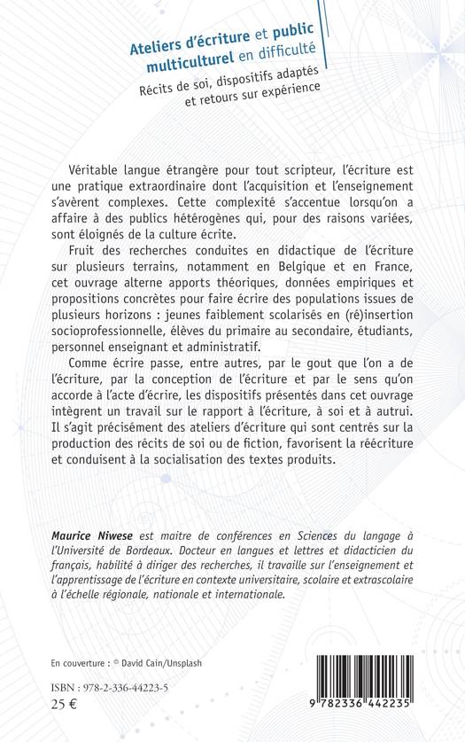 Véritable langue étrangère pour tout scripteur, l'écriture est une pratique extraordinaire dont l'acquisition et l'enseignement s'avèrent complexes. Cette complexité s'accentue lorsqu'on a affaire à des publics hétérogènes qui, pour des raisons variées, sont éloignés de la culture écrite. Fruit des recherches conduites en didactique de l'écriture sur plusieurs terrains, notamment en Belgique et en France, cet ouvrage alterne apports théoriques, données empiriques et propositions concrètes pour faire écrire des populations issues de plusieurs horizons: jeunes faiblement scolarisés en (ré)insertion socioprofessionnelle, élèves du primaire au secondaire, étudiants, personnel enseignant et administratif. Comme écrire passe, entre autres, par le gout que l'on a de l'écriture, par la conception de l'écriture et par le sens qu'on accorde à l'acte d'écrire, les dispositifs présentés dans cet ouvrage intègrent un travail sur le rapport à l'écriture, à soi et à autrui. Il s'agit précisément des ateliers d'écriture qui sont centrés sur la production des récits de soi ou de fiction, favorisent la réécriture et conduisent à la socialisation des textes produits.
