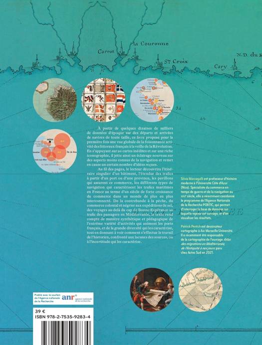 Au fil des pages, le lecteur découvrira l’itinéraire singulier d’un bâtiment, l’étendue des trafics à partir d’un port ou d’une province, les pavillons qui assurent ce commerce, les différents types de navigation qui caractérisent les trafics maritimes en France au terme d’un siècle de forte croissance du commerce dans un monde de plus en plus interconnecté. De la contrebande à la pêche, du commerce colonial et négrier aux expéditions de sel, des voyages au-delà du cap de Bonne-Espérance au trafic des passagers en Méditerranée, le texte rend compte de manière synthétique et pédagogique de l’extrême variété d’activités qui animent les ports français, et de la grande diversité qui les caractérise, tout en donnant à voir comment s’effectue le travail de l’historien, confronté aux lacunes des sources, ou à l’incertitude qui les caractérise.