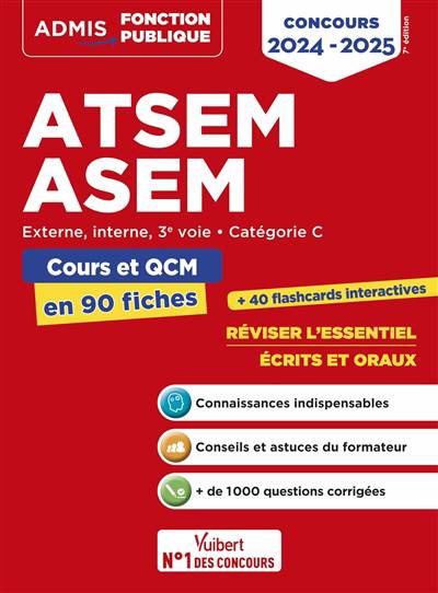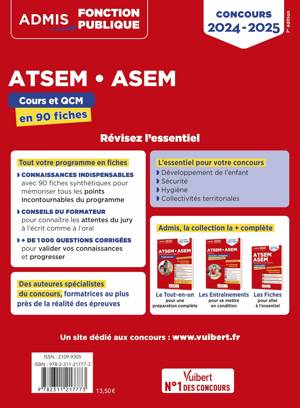 90 fiches de cours et d'entraînement pour une préparation rapide et efficace aux épreuves écrites et orales des concours d'ATSEM (externe, interne, 3e voie) et d'ASEM !