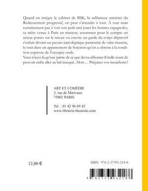 Quand on intègre le cabinet de BSK, la sulfureuse ministre du Redressement progressif, on peut s'attendre à tout. À tout mais certainement pas à voir son petit ami jouer les bonnes espagnoles, sa mère venue à Paris en tracteur, assommer pour le compte un acteur porno sur le retour ou encore un garde du corps dépressif s'enfuir devant un paysan narcoleptique passionné de valse musette, le tout dans un appartement de fonction qu'on a obtenu à la condition expresse de l'occuper seule. Vous n'avez là qu'une partie de ce que devra affronter Estelle avant de pouvoir enfin aller au bal masqué. Alors... Préparez vos mouchoirs !