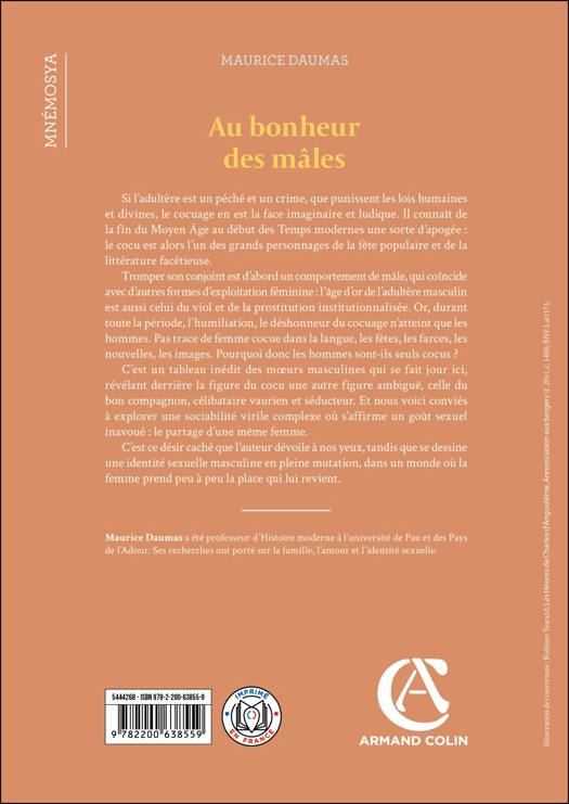 Comment est-on passé à la Renaissance des moeurs brutales du Moyen Âge (l'idée même d'amour est à peu près absente, l'oppression des femmes d'une totale rudesse) à la conception moderne du couple aimant, qui s'affirme à partir du XVIIe siècle ? La réponse qu'apporte Maurice Daumas à travers cette plongée des plus savoureuses dans l'univers de nos ancêtres, est étonnante... La question de l'adultère, l'évolution de son traitement par la société, et surtout l'extraordinaire foisonnement de rites et de mythes qui entourent la figure du cocu ont joué un rôle clé ! La démonstration est imparable : l'infidélité a été un facteur de socialisation (entre hommes, autour de la même femme, c'est tout le thème des "bons compagnons", et entre homme et femmes), d'adoucissement des moeurs (du moment qu'on peut s'assumer "cocu"...) et une source inépuisable d'amusement !