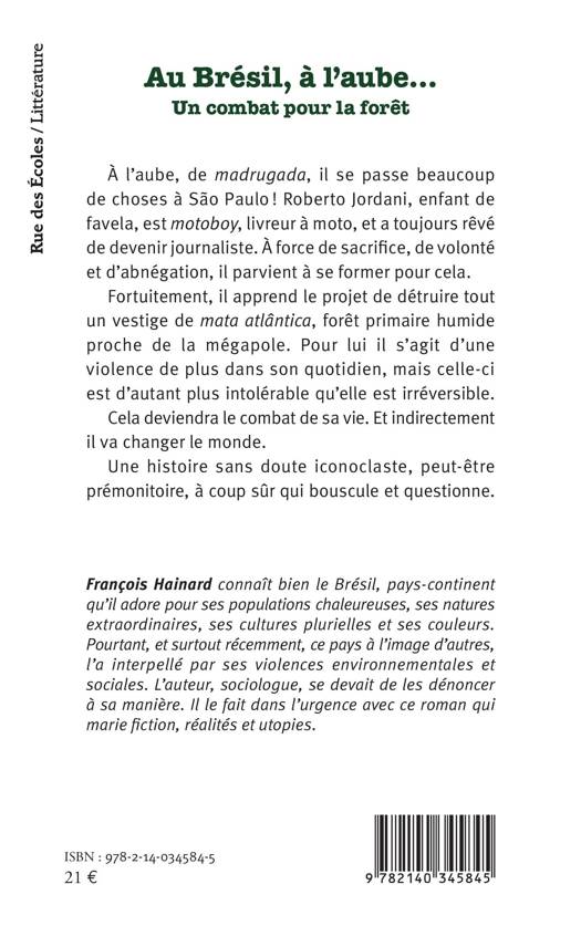À l'aube, de madrugada, il se passe beaucoup de choses à São Paulo ! Roberto Jordani, enfant de favela, est motoboy, livreur à moto, et a toujours rêvé de devenir journaliste. À force de sacrifice, de volonté et d'abnégation, il parvient à se former pour cela. Fortuitement, il apprend le projet de détruire tout un vestige de mata atlântica, forêt primaire humide proche de la mégapole. Pour lui il s'agit d'une violence de plus dans son quotidien, mais celle-ci est d'autant plus intolérable qu'elle est irréversible. Cela deviendra le combat de sa vie. Et indirectement il va changer le monde. Une histoire sans doute iconoclaste, peut-être prémonitoire, à coup sûr qui bouscule et questionne.