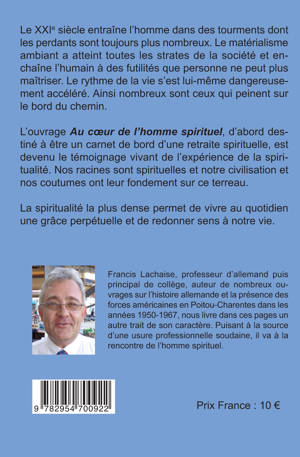 L’ouvrage "Au cœur de l’homme spirituel", d’abord destiné à être un carnet de bord d’une retraite spirituelle, est devenue le témoignage vivant de l’expérience de la spiritualité. Nos racines sont spirituelles et notre civilisation et nos coutumes ont leur fondement sur ce terreau.