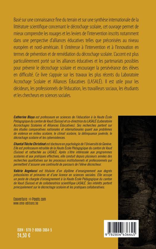 Basé sur une connaissance fine du terrain, cet ouvrage permet de mieux comprendre les rouages du décrochage scolaire. Il s'intéresse à l'intervention et à l'innovation en termes de prévention et de remédiation du décrochage scolaire. L'accent est porté sur les interventions, les alliances éducatives et les partenariats possibles pour prévenir le décrochage et encourager la persévérance des élèves en difficulté. Ce livre est utile pour les décideurs, les professionnels de l'éducation, les travailleurs sociaux, les étudiants et les chercheurs en sciences sociales, etc.