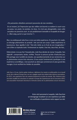 Rien ne prédisposait Julie Ewa à vivre une telle expérience. Et pourtant. Un matin, un étrange phénomène se produit : elle sort de son corps. Cette expérience la bouleverse. Que signifie-t-elle ? Est-elle réelle ou le fruit de son imagination ? Loin d'être un épisode isolé, l'évènement se répète. Une fois, deux fois, dix fois...