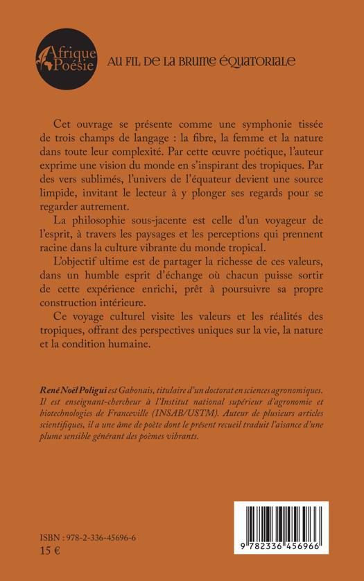 Cet ouvrage se présente comme une symphonie tissée de trois champs de langage la fibre, la femme et la nature dans toute leur complexité. Par cette oeuvre poétique, l'auteur exprime une vision du monde en s'inspirant des tropiques. Par des vers sublimés, l'univers de l'équateur devient une source limpide, invitant le lecteur à y plonger ses regards pour se regarder autrement. La philosophie sous-jacente est celle d'un voyageur de l'esprit, à travers les paysages et les perceptions qui prennent racine dans la culture vibrante du monde tropical. L'objectif ultime est de partager la richesse de ces valeurs, dans un humble esprit d'échange où chacun puisse sortir de cette expérience enrichi, prêt à poursuivre sa propre construction intérieure. Ce voyage culturel visite les valeurs et les réalités des tropiques, offrant des perspectives uniques sur la vie, la nature et la condition humaine.