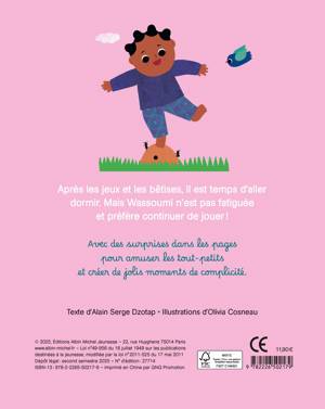 Après les jeux et les bêtises, il est temps d'aller dormir. Mais Wassoumi n'est pas fatiguée et préfère continuer de jouer !