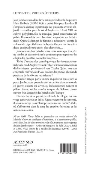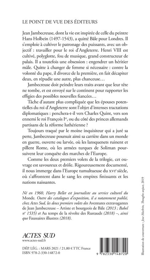 Jean Jambecreuse, dont la vie est inspirée de celle du peintre Hans Holbein (1497-1543), a quitté Bâle pour Londres. Il s'emploie à cultiver le patronage des puissants, avec un objectif : travailler pour le roi d'Angleterre. Henri VIII est cultivé, polyglotte, fou de musique, grand constructeur de palais. Il a toutefois une obsession : engendrer un héritier mâle. Quitte à changer de femme si nécessaire : contre la volonté du pape, il divorce de la première, en fait décapiter deux, en répudie une autre, plus chanceuse...