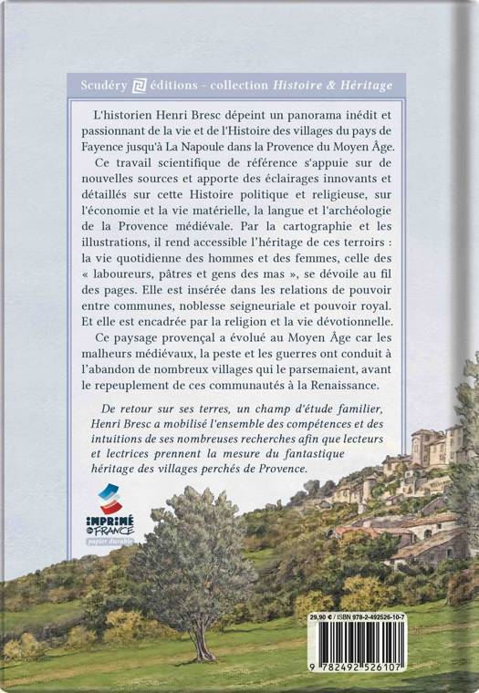 L’historien Henri Bresc présente l’Histoire inédite et passionnante des villages perchés du pays de Fayence à la côte provençale au Moyen Âge. En s’appuyant sur de nouvelles sources et par une cartographie innovante, son ouvrage aborde d’abord les relations entre communes, noblesse seigneuriale et pouvoir royal, ainsi que l’encadrement religieux et la vie dévotionnelle. Les malheurs du XIVe siècle, la peste et la guerre ont conduit à l’abandon de nombreux villages qui parsemaient le paysage provençal, avant que la Renaissance voit le repeuplement des communautés. À l’ombre des châteaux, des églises et du tissu urbain conservés, se dévoile le dynamisme d’une économie rurale et artisanale animée par la transhumance. La vie quotidienne des « laboureurs, des pâtres et gens des mas » se dévoile au fil des pages dans cet ouvrage important. Une édition de qualité, aérée, illustrée de schémas et de photographies, éclaire l’héritage de ces terroirs et rend accessible à tous ce remarquable travail scientifique.
