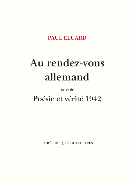 Les deux recueils "Au rendez-vous allemand" et "Poésie et vérité 1942", publiés clandestinement pendant la Seconde Guerre mondiale, rassemblent les poèmes qui ont été directement inspirés à Paul Eluard par les luttes de la Résistance française. Le sens de "Poésie et vérité 1942", qui s’ouvre sur le superbe et provocant "Liberté", ne peut guère laisser de doute sur le but poursuivi: retrouver sa liberté d’expression pour mieux nuire à l’occupant nazi. «Mais fallait bien que la poésie prît le maquis», écrit-il. Paul Éluard fut le grand poète de la Résistance. Ses poèmes de combat, simples, directs, bouleversants, sont certainement les plus célèbres de son œuvre et ceux qui firent le plus pour sa gloire. Selon Claude Roy, «De 1940 à 1944, des millions d’hommes et de femmes ont été véritablement amoureux de la liberté. Ils ont lu et compris "Liberté" comme on lit et comprend une déclaration d’amour». Une bibliographie et une biographie de Paul Eluard complètent cette édition.