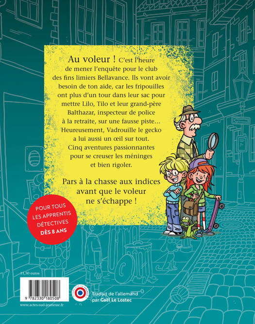 Tilo, traquent sans répit les voleurs, aidés par leur grand-père policier à la retraite. Sans oublier Vadrouille, leur fidèle gecko de compagnie. Grâce à leur infaillible flair et leur sens de la déduction, le vol d'un costume de père Noël puis celui de la boîte magique d'un prestidigitateur les conduisent à empêcher le cambriolage d'un bijoutier. Vols d'oeuvres d'art, trafic de faussaires, les enquêtes s'enchaînent pour nos fins limiers. Les énigmes alternent entre scènes d'indices à trouver, jeux de labyrinthe, de points à relier, ou déchiffrement de messages codés, variant les niveaux de difficulté. Sans oublier qu'à la fin de chaque histoire, il s'agit de retrouver le facétieux gecko caché dans le décor !