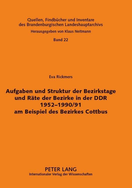 Die Publikation beschreibt die verwaltungsgeschichtliche Entwicklung der Bezirkstage und Räte der Bezirke der DDR zwischen 1952 und 1990/91 am Beispiel des Bezirkes Cottbus. Sie geht detailliert auf die einzelnen Strukturteile und deren Aufgaben und Zuständigkeiten ein, gibt dadurch einen umfassenden Überblick über die von der wichtigsten Verwaltungsbehörde der DDR auf der regionalen Ebene bearbeiteten Sachgebiete und belegt die Ausführungen durch ausführliche Quellenangaben. Im Anhang werden die leitenden Mitarbeiter in Kurzbiographien vorgestellt. Begriffserklärungen DDR-typischer Termini und ein Sach- und Personenregister sowie ein Abkürzungsverzeichnis erleichtern dem Leser die Benutzung.