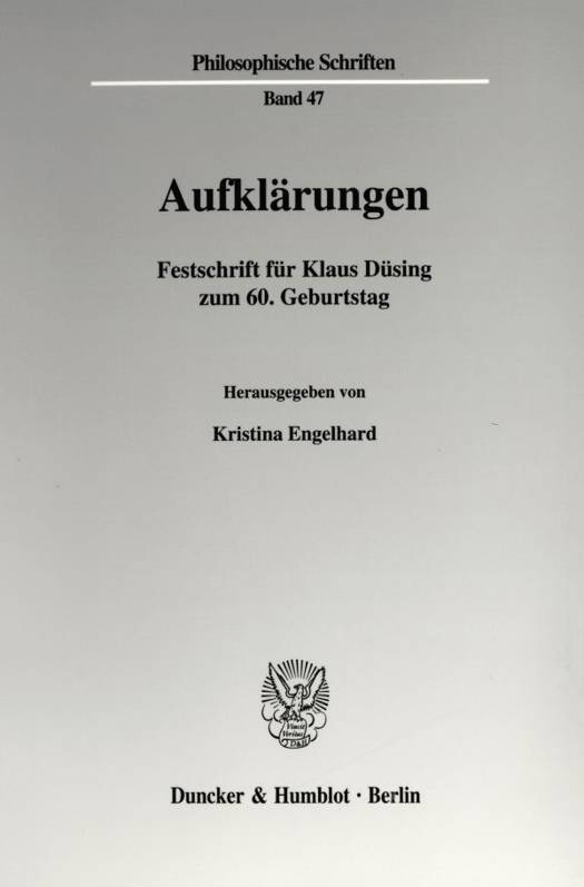 Das philosophische Wirken Klaus Dusings lasst sich in vielfaltiger Weise einerseits affirmativ, andererseits kritisch durch den Begriff Aufklarung fassen. Versteht man unter Aufklarung eine theoretische Konzeption, fur welche die Autonomie des Subjekts grundlegend ist, eine padagogische Haltung, die eben jene Autonomie fordert, einen methodischen Anspruch auf Klarheit oder einen Interpretationsansatz, der die historischen Verwurzelungen philosophischer Texte beachtet und freilegt, mit dem Ziel, traditionsunabhangig und vorurteilsfrei deren Erklarungswert zu beurteilen und ihre systematische Bedeutung zu wurdigen, so sind Aufklarungen fur Klaus Dusings Wirken kennzeichnend. Mit seinem systematischen Werk Selbstbewusstseinsmodelle hat Klaus Dusing in die gegenwartig wieder lebhafte Debatte um die Probleme der Subjektivitat eine neue Konzeption der konkreten, autonomen Subjektivitat eingebracht. Kritisch gegenuber Ansatzen der historischen Epoche der Aufklarung ist Klaus Dusing darin, dass er hier zeigt, wie die Selbstbeziehung des Ich auf sich in unterschiedlichen Modellen zu einer Sinnanreicherung des Selbst fuhrt und kein sinnentleerter Formalismus der reinen Vernunft droht; dies hat Hegel an der Aufklarung kritisiert. Seine Arbeiten zu Kernproblemen der Philosophiegeschichte haben der Forschung immer wieder starke Impulse gegeben, etwa durch seine Habilitation Das Problem der Subjektivitat in Hegels Logik, in der Klaus Dusing nachweist, dass Hegels Logik eine Theorie der reinen Subjektivitat und nicht eine objektiv-ontologische Konzeption ist; diese Deutung hat der Hegel-Forschung eine ganz neue Perspektive eroffnet. Die Beitrage dieser Aufsatzsammlung, mit denen die Autoren ihren Lehrer Klaus Dusing ehren mochten, unternehmen den Versuch, sein aufklarerisches Anliegen fortzuschreiben: Dirk Fonfara untersucht das Problem der Struktur des Geltungsbereichs der Aristotelischen Ontologie; Kristina Engelhard setzt sich kritisch mit Leibniz' Konzeption der Monade als funktionaler Einheit aus Materie und substantieller Form auseinander. Dietmar H. Heidemann zeigt eine neue Begrundungsalternative fur den Kantischen Dualismus von Anschauung und Begriff auf. Rainer Schafer zeichnet die Entwicklung des Ubergangs von einem transzendental-kritischen zum metaphysischen Idealismus bei Fichte und Schelling nach. Christian Hanewald exponiert am Beispiel Tylor Burges und Hilary Putnams theorie-immanente Probleme externalistischer Bedeutungs- und Geisttheorien. Tobias Schlicht bringt Licht in die Kontroverse zwischen Dennett und Searle um das Verhaltnis von Gehirn und Bewusstsein im Kontext des Chinesischen-Zimmer-Argumentes. Anja Solbach analysiert, welche Bedeutung einerseits Holderlin, andererseits Hegel der Tragodie fur die Selbsterhellung der menschlichen Existenz in ihrem Verhaltnis zum Absoluten, zu Sittlichkeit, Freiheit und Geschichte zuschreiben. Morteza Ghasempour deutet Friedrich Nietzsche als Aufklarer der conditio humana: den Nihilismus des objektivierenden Denkens kann allein eine kunstlerische Seinsweise uberwinden.