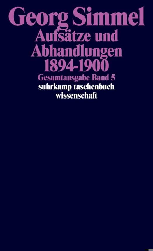 Band 5 der GSG vereint alle wissenschaftlichen Aufsätze und Abhandlungen aus den Jahren 1894 bis 1900, mit Ausnahme der anonymen und pseudonymen Veröffentlichungen dieser Zeit. Zwei Schwerpunkte lassen sich in den Texten aus dieser Zeit erkennen: den einen bilden soziologische Arbeiten, den anderen Arbeiten zum Themenkreis "Soziologie des Geldes" (GSG 6), insbesondere Vorabdrucke zu diesem Werk.