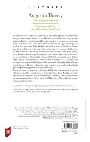 Entre politique de mémoire et fabrique de l'histoire, les travaux d'Augustin Thierry dessinent les revendications et les contradictions d'une discipline en pleine rénovation au lendemain de la Révolution et de l'Empire. C'est à la redécouverte du parcours et de l’oeuvre de l'"Homère de l'Histoire" (Chateaubriand) que cet ouvrage collectif invite.