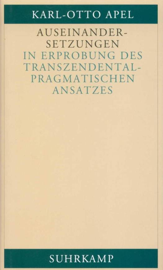In diesen »Auseinandersetzungen« geht es sowohl um kritisch aneignende Interpretationen zeitgenössischer Positionen der Philosophie als auch um die Konfrontation dieser Positionen mit der von Apel so genannten »Transzendentalpragmatik«. Es handelt sich also um Beispiele einer fortlaufenden »Erprobung« des »transzendentalpragmatischen Ansatzes«.