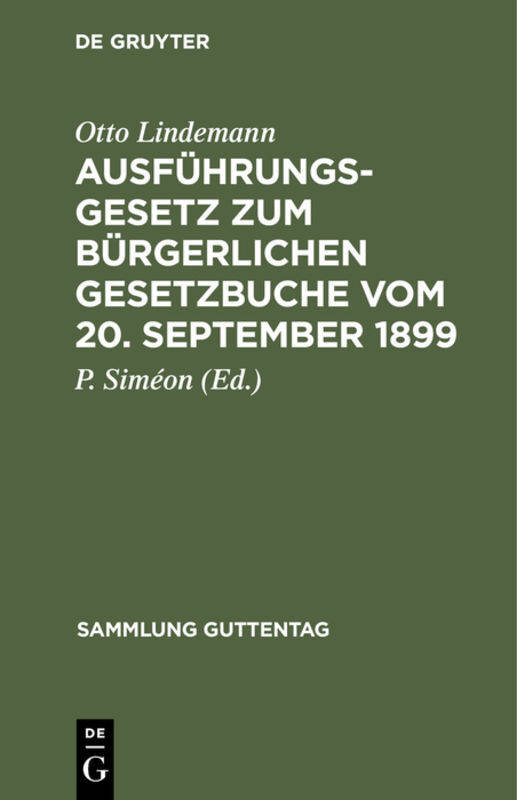 Keine ausführliche Beschreibung für "Ausführungsgesetz zum Bürgerlichen Gesetzbuche vom 20. September 1899" verfügbar.