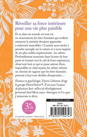 Et si, dans un monde où tout est en mouvement, les êtres humaines qui veulent retrouver la sérénité devaient apprendre à redevenir immobiles ? L'auteur nous invite à prendre exemple sur la nature et à nous inspirer de ses plus nobles représentants : les arbres. Profondément enracinés dans la terre de leur passé et tourné vers le ciel de leurs espérances, observant tout ce qui se passe autour d'eux, impassibles et clairvoyants, les arbres suivent un chemin de sagesse que les êtres humains peuvent à leur tour décider d'emprunter...