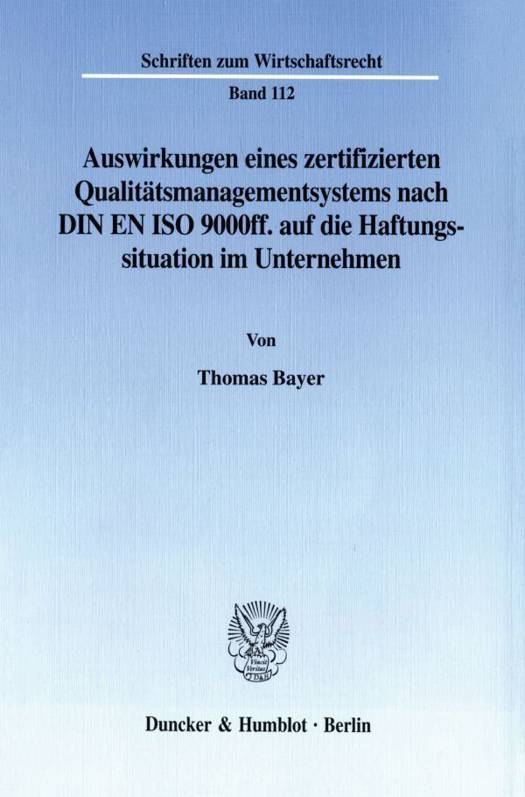 Nach einer umfassenden Einführung in die Problematik und einem Überblick über die bisherige Entwicklung von Qualitätssicherungsmaßnahmen wird untersucht, ob ein Qualitätsmanagementsystem nach DIN EN ISO 9000ff. dem Unternehmer bei der Inanspruchnahme auf Schadensersatz im Wege der Produkthaftung insoweit von Nutzen sein kann, als er durch die Beachtung der Normforderungen die unternehmensspezifischen Sorgfaltspflichten erfüllt. Dabei werden die Haftungsvoraussetzungen bzw. die von der Rechtsprechung aufgestellten Grundsätze mit den Forderungen der DIN ISO-Normen an die Unternehmensorganisation verglichen. Die Erfüllung dieser Forderungen allein reicht aber für eine Haftungsbefreiung nicht aus. Sie ermöglicht lediglich die Vermeidung produktionsbedingter Fehlleistungen und wirkt präventiv mit dem Ziel, das Entstehen von Fehlern zu verhindern. Weiterhin werden die Auswirkungen eines einseitig vorhandenen zertifizierten Qualitätsmanagementsystems auf die im Rahmen des jeweiligen Vertrages entstehenden Gewährleistungsrechte untersucht. In Abgrenzung zu den sogenannten Qualitätssicherungsvereinbarungen gelangt der Autor hierbei zu dem Ergebnis, daß solche einseitigen unternehmensinternen Maßnahmen nur beschränkte Auswirkungen auf vertragliche Rechte und Pflichten haben.